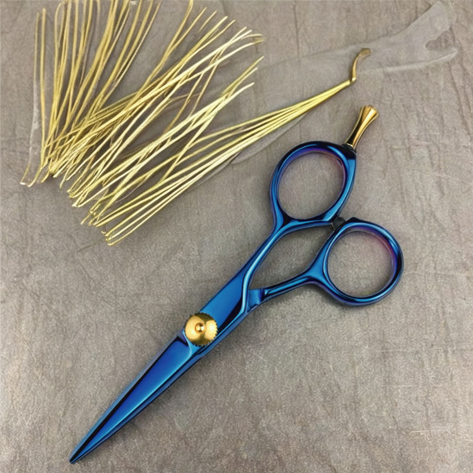 Ciseaux de coupe de cheveux à lame convexe plaqués titane professionnel de 5 pouces avec outil de beauté à poignée décalée à pointe pointue