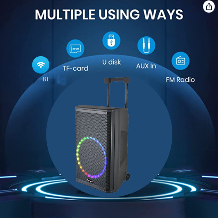 Système de sonorisation portable professionnel 50-100W avec caisson de basses, DJ TWS, karaoké, LED RGB 5.3, 2 micros sans fil, vendu en usine