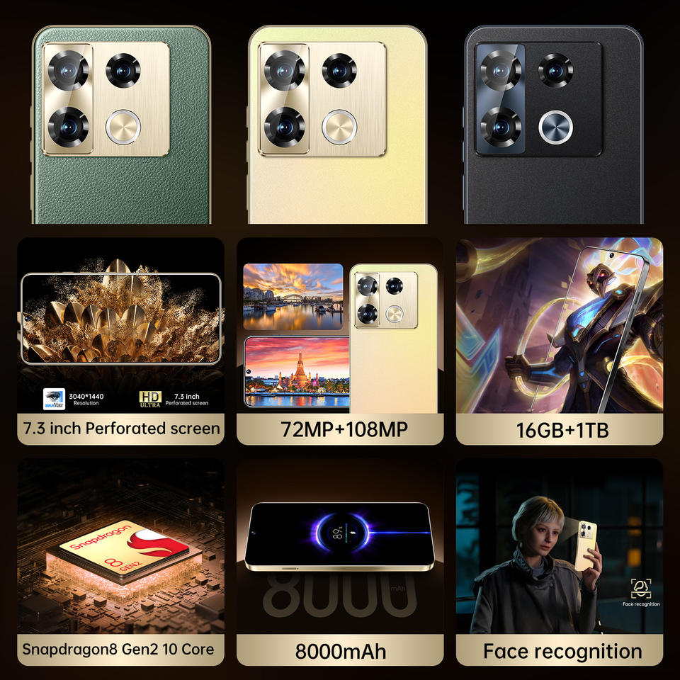 Smartphone professionnel 5G LTE personnalisé Note 40 1 To Android 15 4K 120 Hz Octa Core Appareil photo 108 MP Charge rapide 65 W 7000 mAh