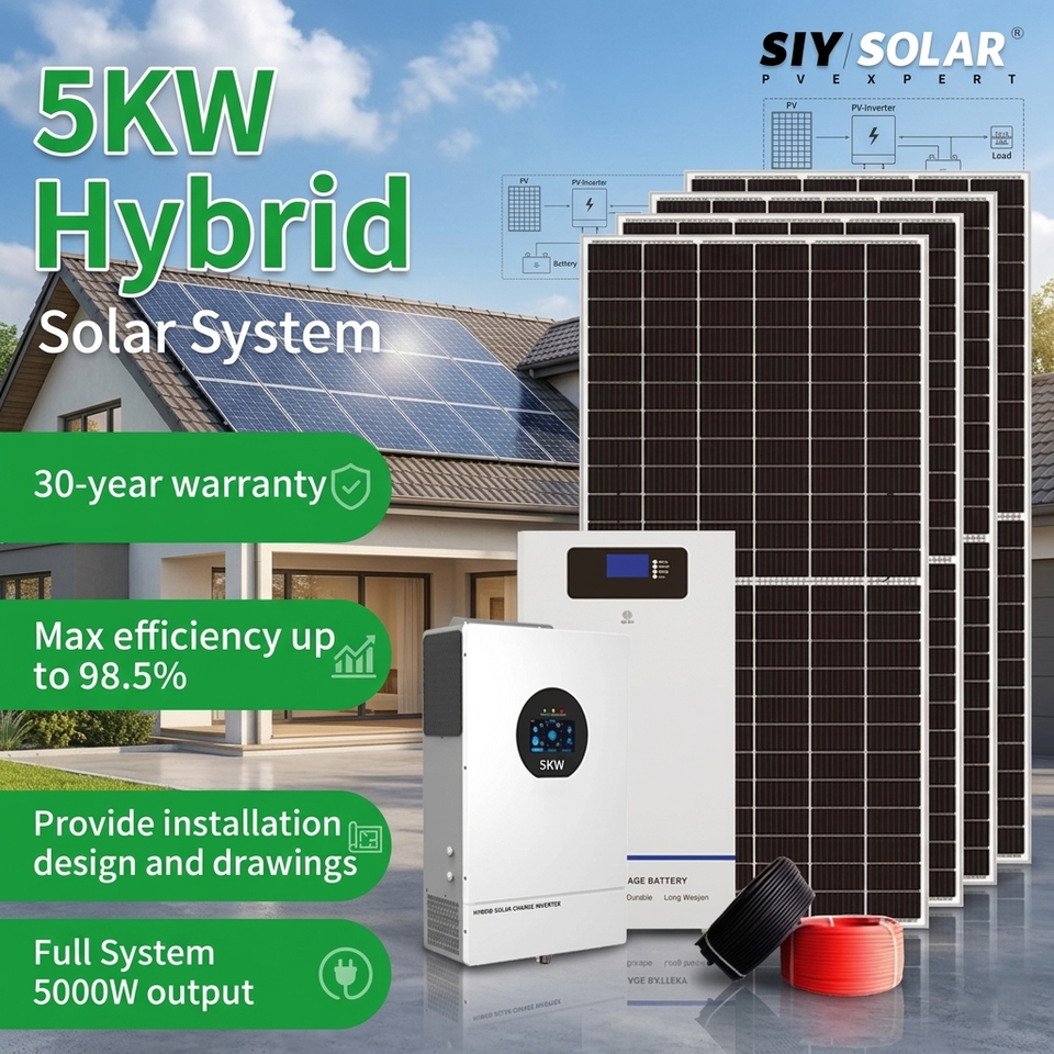 Système d'énergie solaire hybride professionnel 5KW, module photovoltaïque 5000W, fabricant en gros, solution intégrée personnalisée