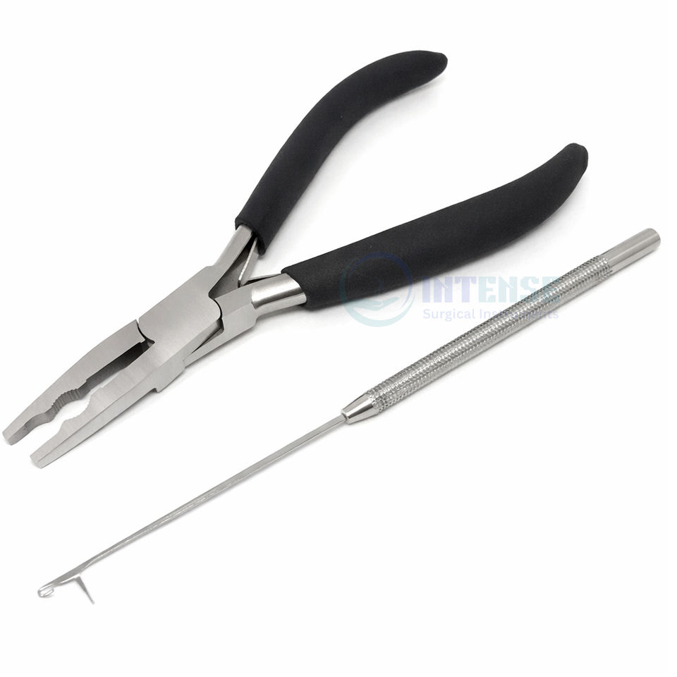 Pince à cheveux professionnelle en acier inoxydable de 6 pouces avec poignée noire et aiguille à boucle pour extensions de cheveux destinées aux coiffeurs