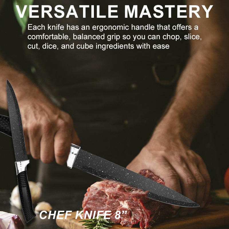 Ensemble Professionnel de 6 Couteaux de Chef Tranchants en Acier Inoxydable, Outil de Découpe Multifonctionnel avec Couteaux d'Office et Boîte Cadeau