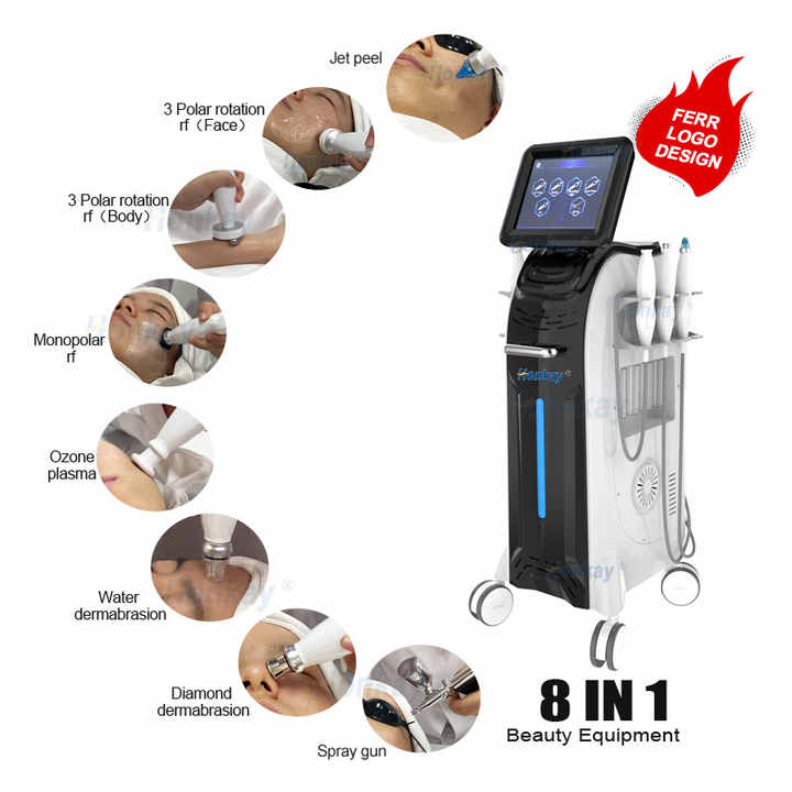 Appareil professionnel 8 en 1 d'hydrodermabrasion et de peeling à jet d'oxygène pour lutter contre le vieillissement, éliminer l'acné et rajeunir la peau