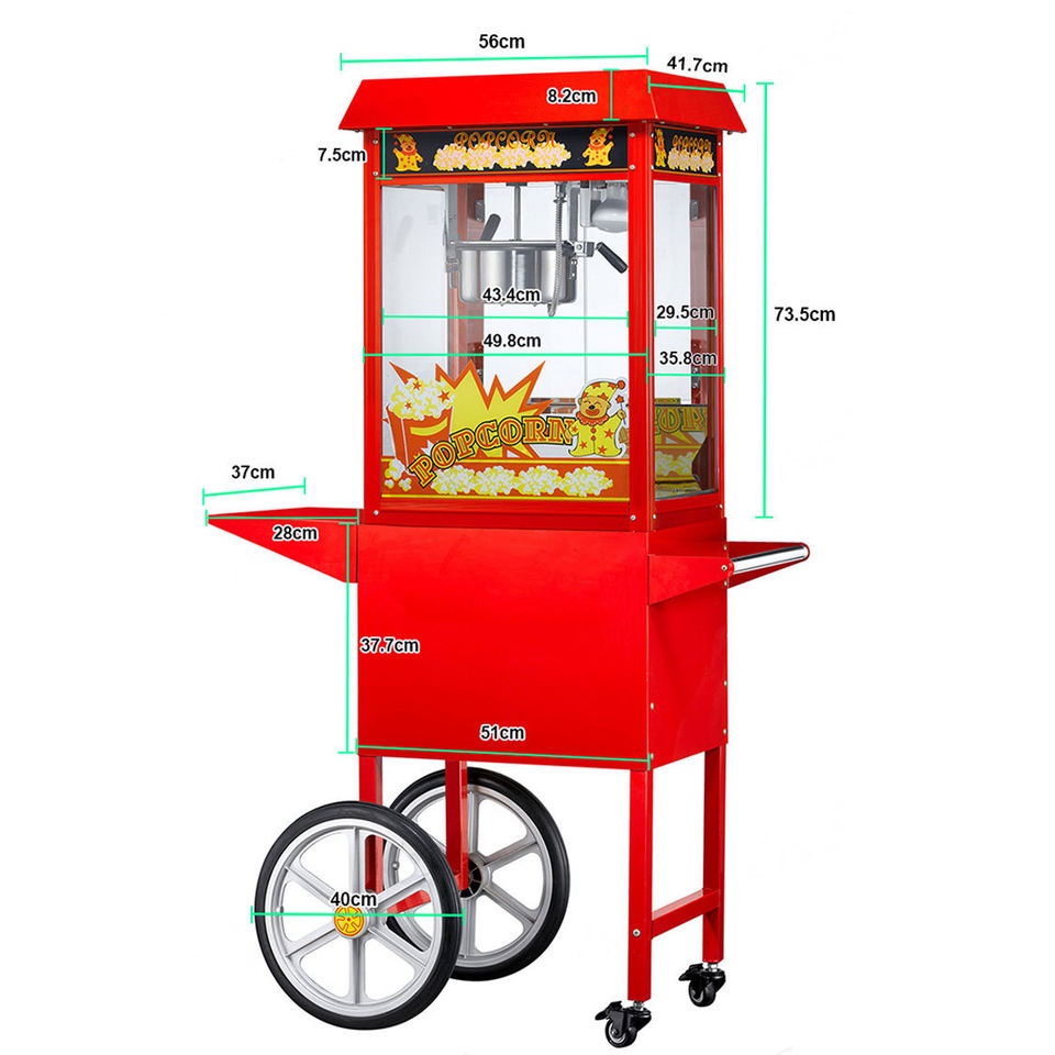 Machine à Popcorn Professionnelle Vintage 8 Oz Mobile Électrique Commerciale Géante Rouge avec Chariot à Roues