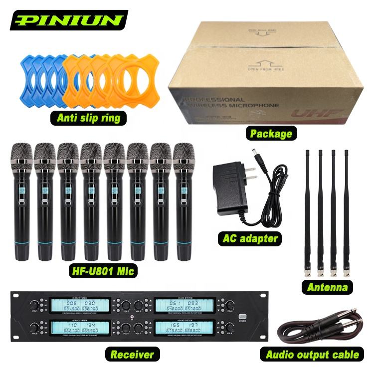 Système de Microphones sans Fil Professionnel 8 Canaux Dynamique Portable Karaoké Familial