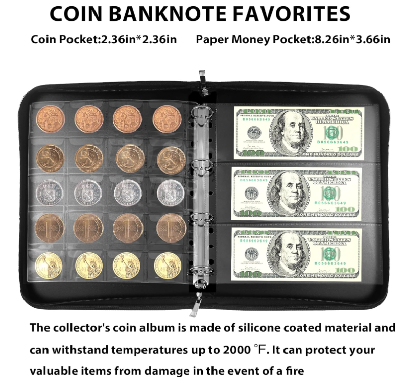 Reliure professionnelle pour collection de pièces de monnaie à 9 trous en PU, album de collection de pièces de monnaie, pochettes en PVC, couverture durable