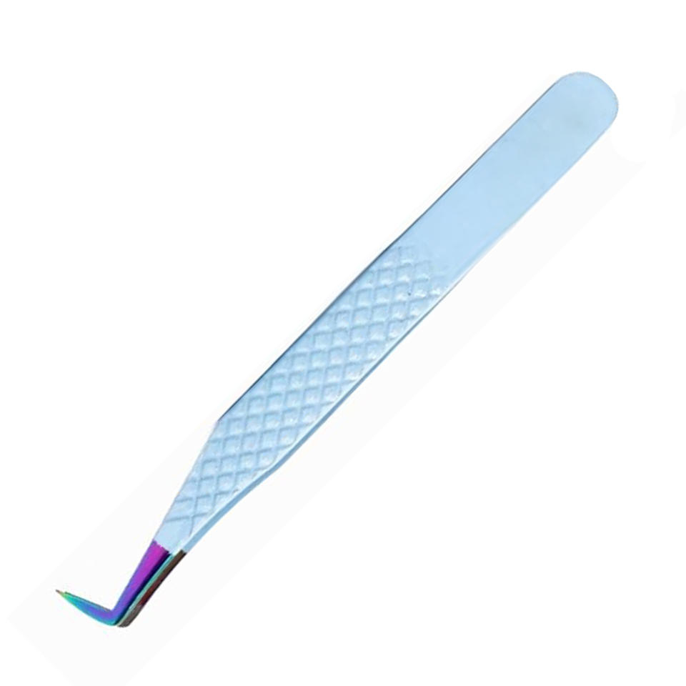 Pince à épiler professionnelle en acier inoxydable avec poignée en diamant à 90 degrés, outil de beauté facile à utiliser pour les extensions de cils chaudes