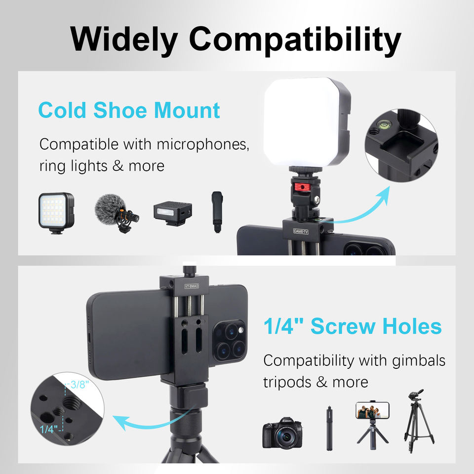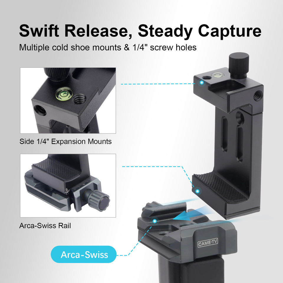 Support de téléphone professionnel Arca avec chaussure froide, support de téléphone universel en aluminium pour trépied vidéo Vlogging YouTube TikTok
