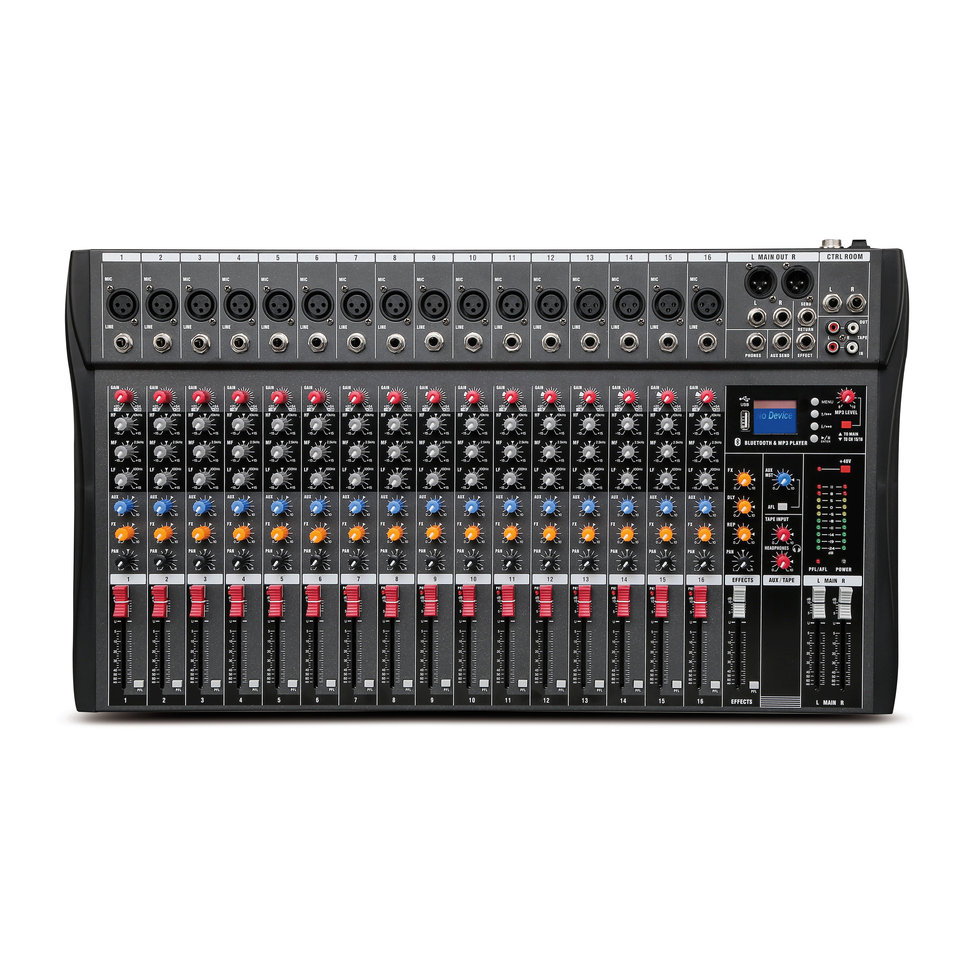 Console de mixage audio professionnelle 16 canaux USB Bluetooth, alimentation fantôme +48V, carte son pour enregistrement en studio