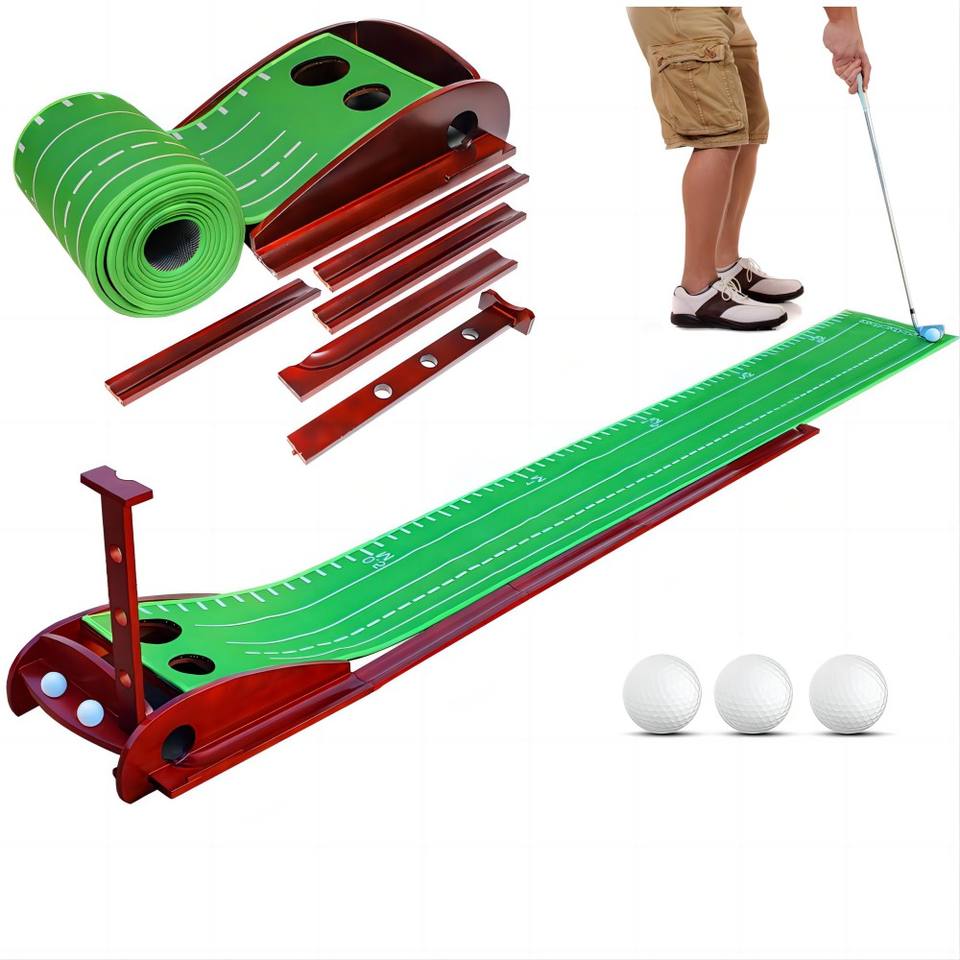 Tapis de putting de golf professionnel avec retour automatique de balle | Équipement d'entraînement portable pour l'intérieur et l'extérieur | Exercice de 1/2 trou pour débutants