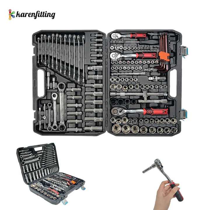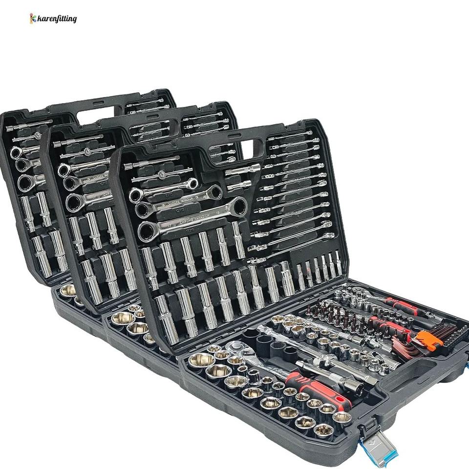 Kit d'outils de réparation automobile professionnel avec jeu de clés à douille manuelles, coffret rigide en acier au chrome-vanadium pour mécaniciens et usage en garage