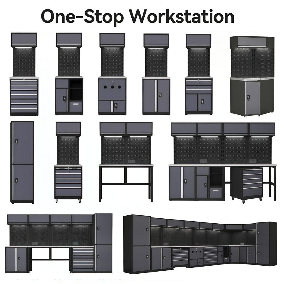 Station de Travail Professionnelle pour Réparation Automobile, Desserte à Outils Mobile Robuste pour Ateliers de Garages, Combinaison Manufacturée