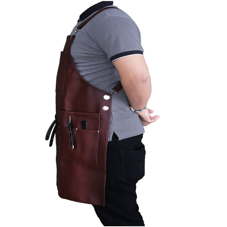 Tablier de barbier professionnel en cuir avec poches, pour hommes et femmes, tablier utilitaire pour le travail du bois, logo personnalisé pour la grillade et le jardinage