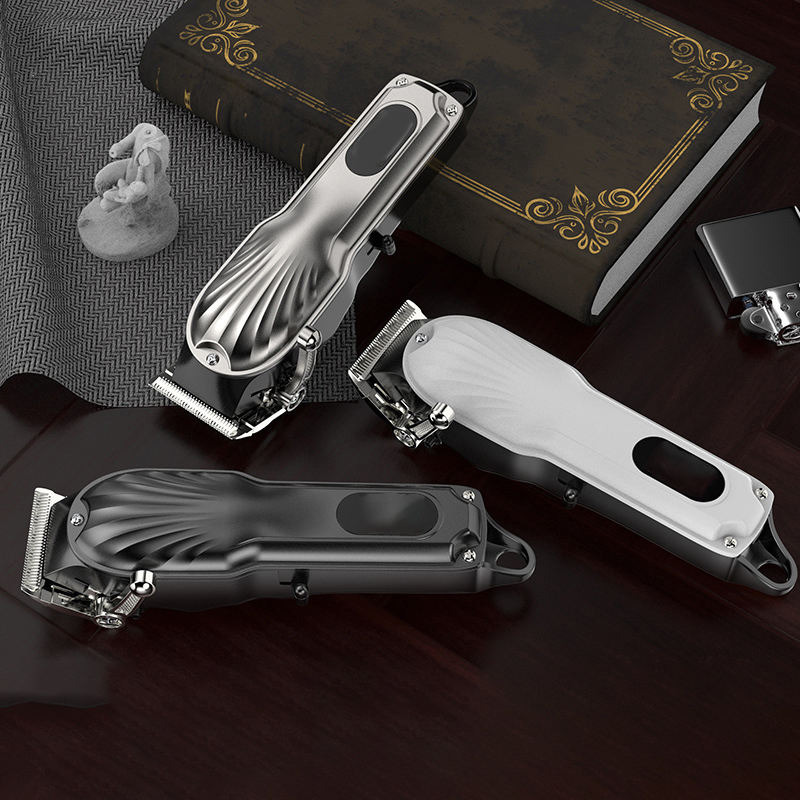 Tondeuse à cheveux professionnelle pour barbier, rechargeable, sans fil, électrique, pour hommes, acier inoxydable, batterie 1500 mAh, LED