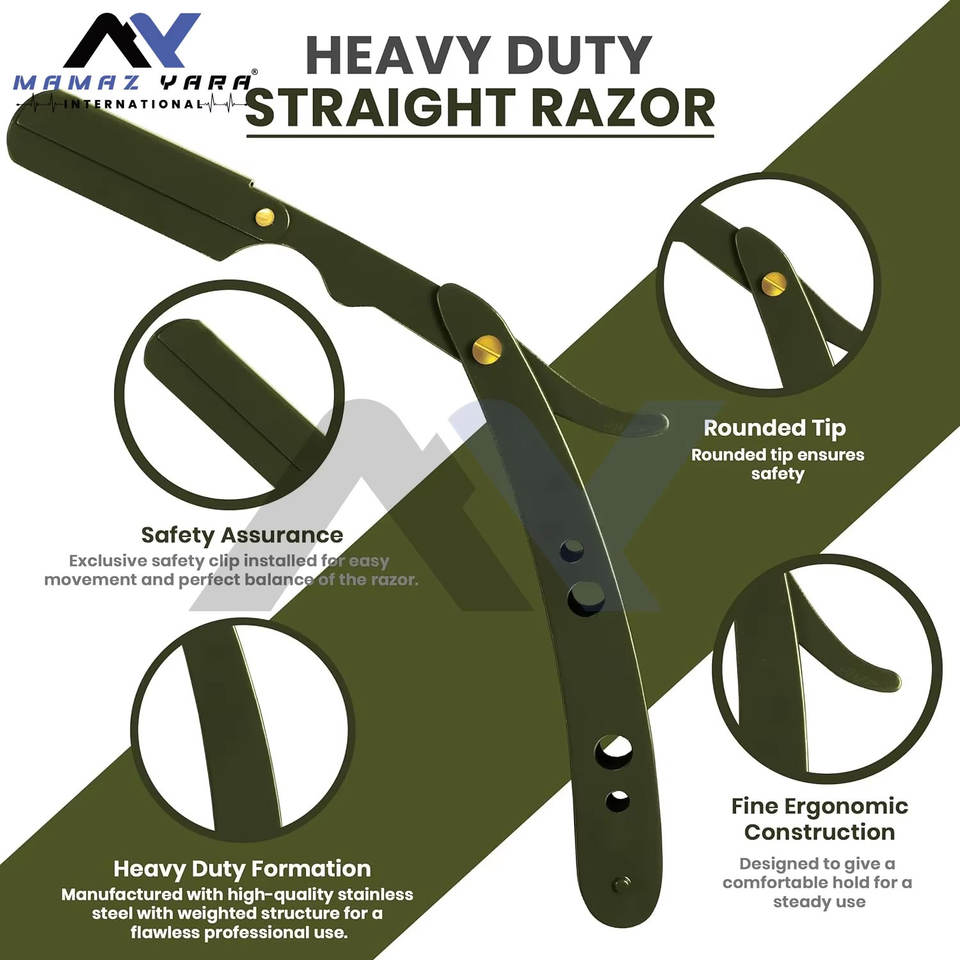 Rasoirs de barbier professionnels personnalisables à lame unique avec système de verrouillage pivotant, outils de rasage en acier inoxydable de couleur verte