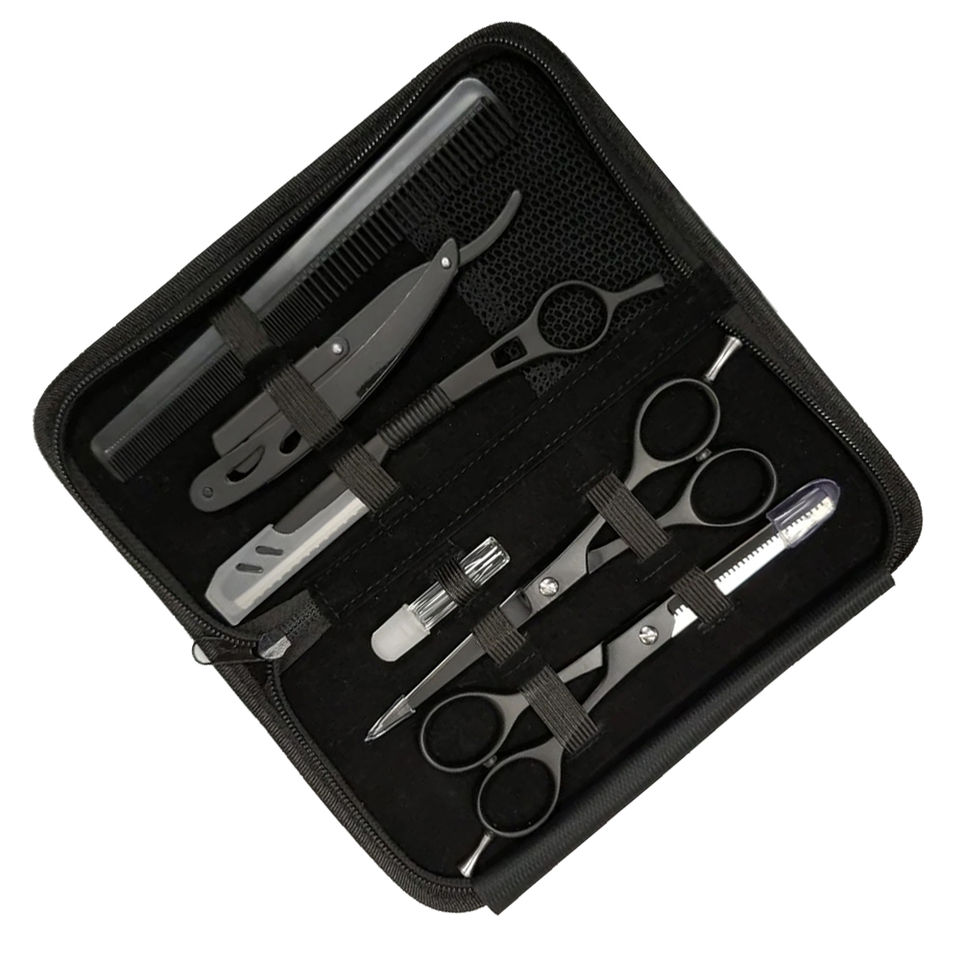Kit de ciseaux de barbier professionnels en acier inoxydable, ciseaux de coupe et d'éclaircissement des cheveux avec rasoir de barbier, ensemble d'outils de toilettage de précision