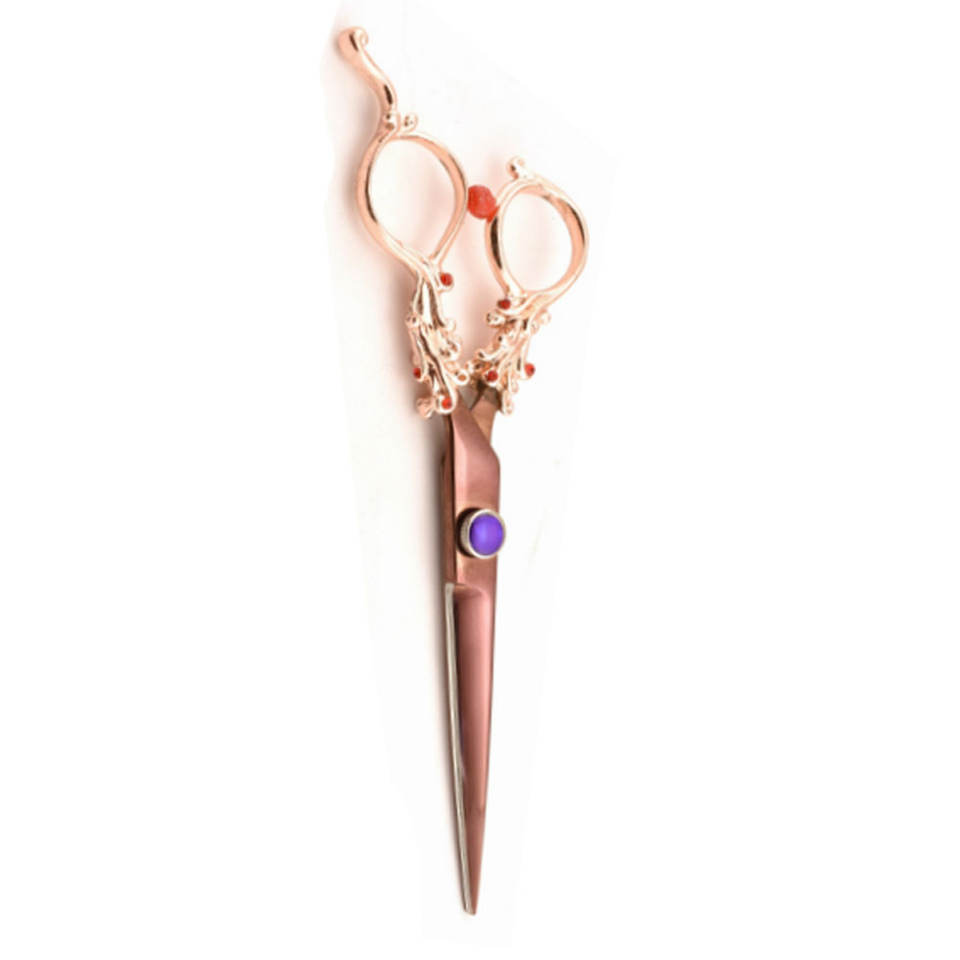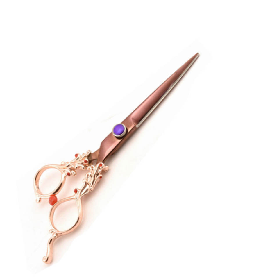 Ciseaux de coiffeur professionnels avec poignée de finition dorée au design fantaisie et lame de finition en cuivre pour la coupe et le coiffage des cheveux