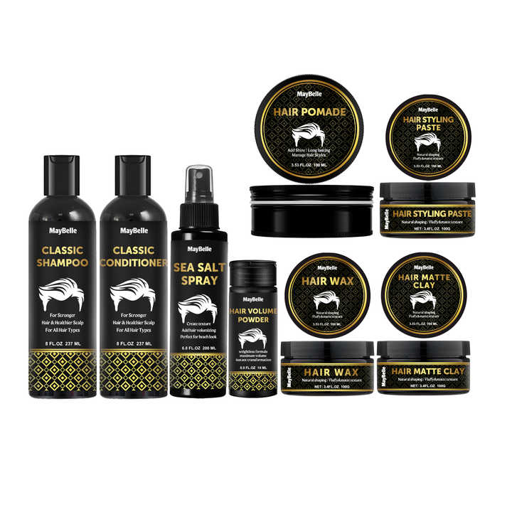 Produits de Coiffure Professionnels pour Hommes Salon de Barbier : Cire, Pommade, Spray au Sel de Mer, Poudre Texturisante, Étiquette Privée pour Brillance Accrue