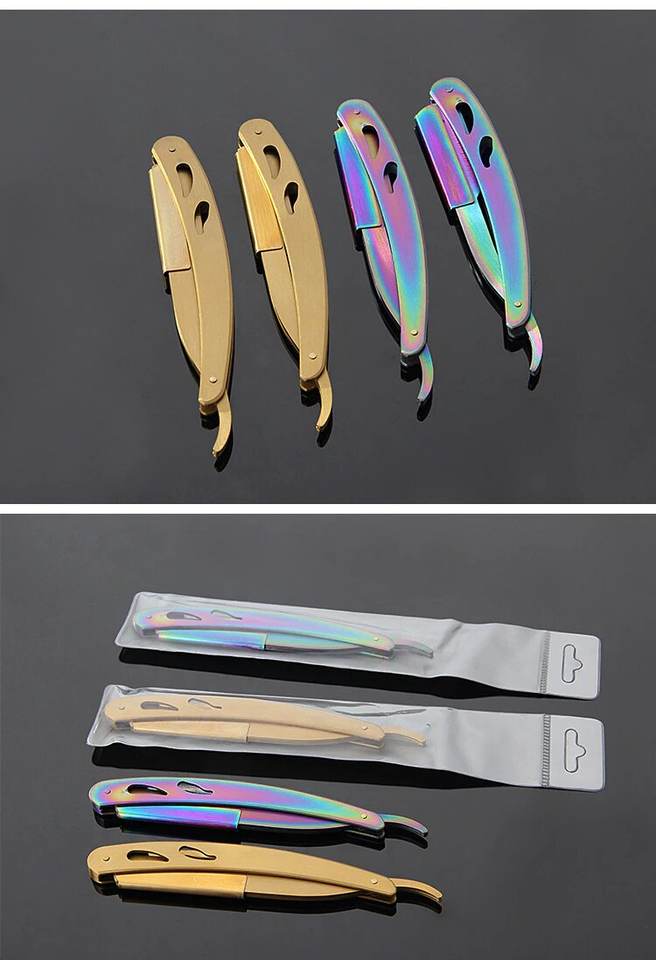 Outils de barbier professionnel rasoir de rasage couleur arc-en-ciel et or pour hommes ciseaux de rasage en acier inoxydable CE ISO