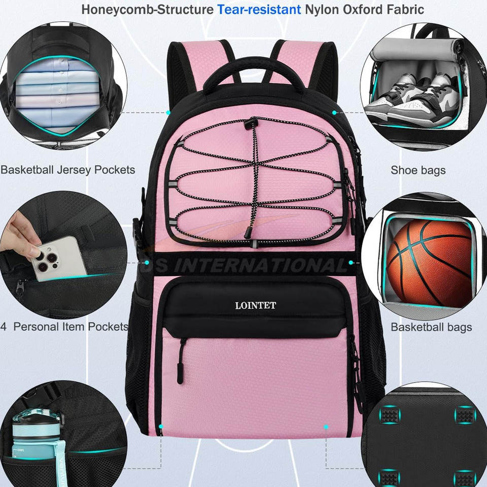 Sac de basket professionnel avec support de balle séparé compartiment à chaussures manchon d'hydratation entraînement sportif sac à dos de gymnastique