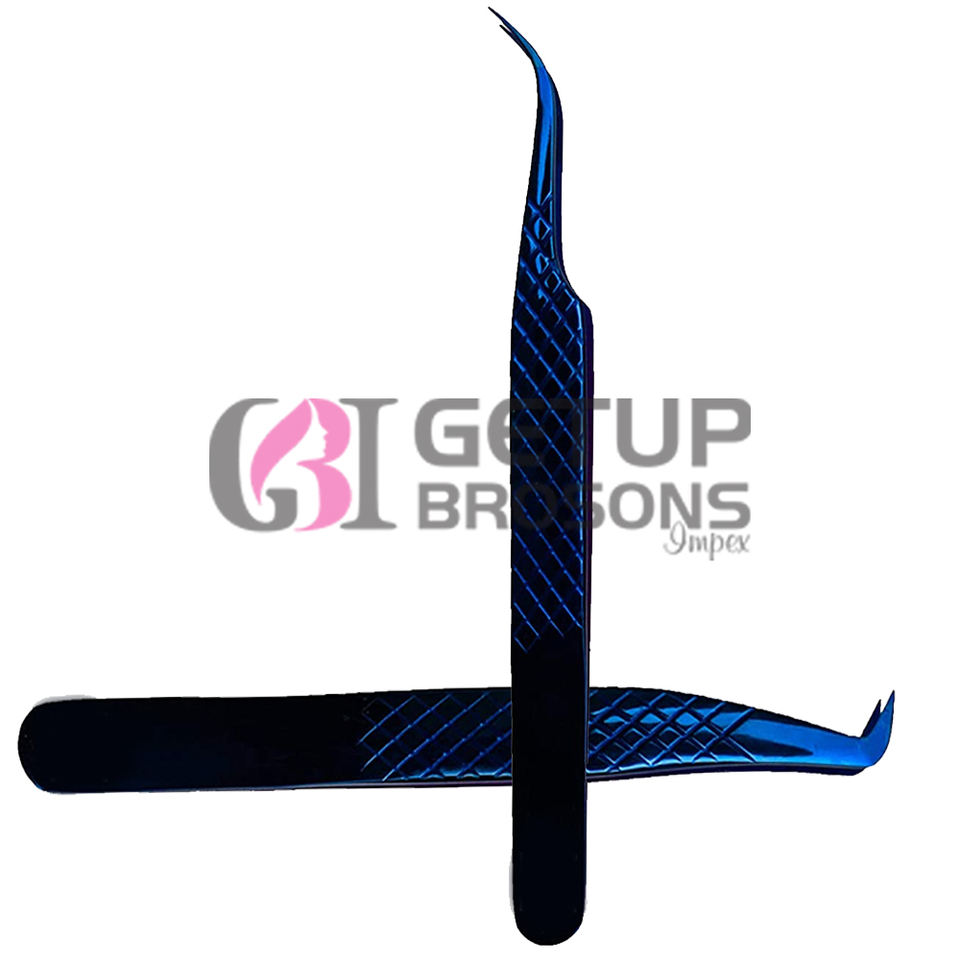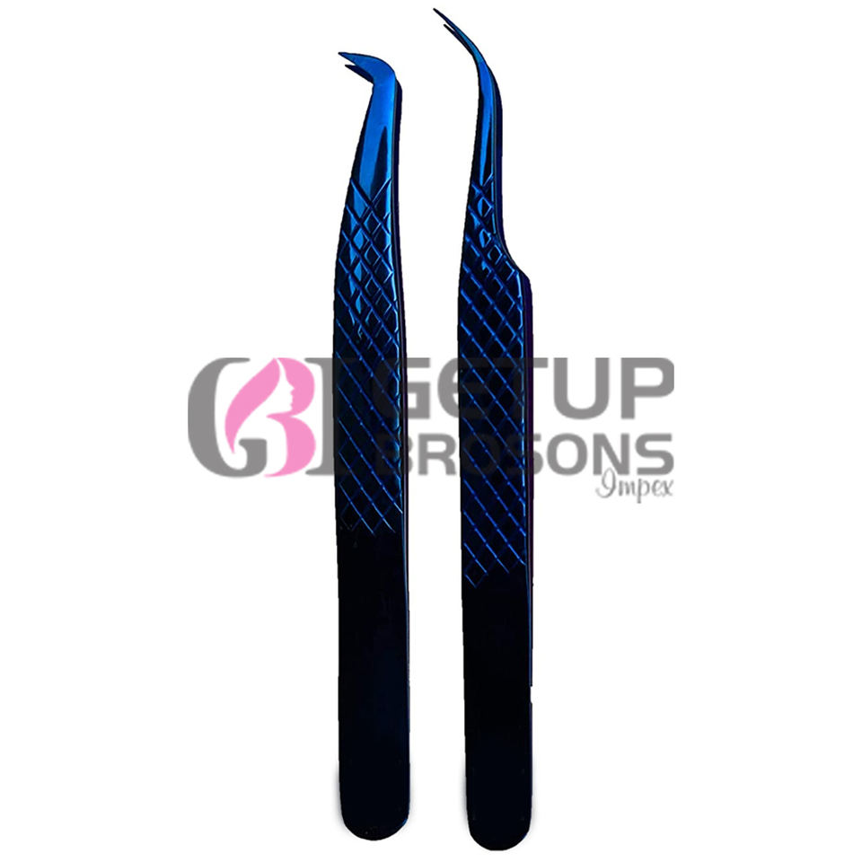 Pince à épiler professionnelle en acier inoxydable avec votre propre Logo, pour Extension de cils à Plasma bleu de Style différent