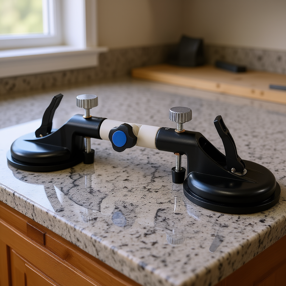Outil d'installation professionnel noir 3-en-1 réglable pour comptoirs, avec ventouse pour le jointement et le nivellement des joints