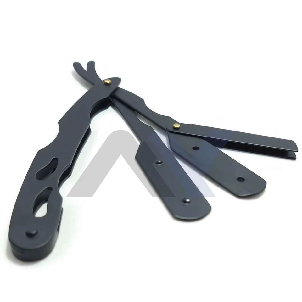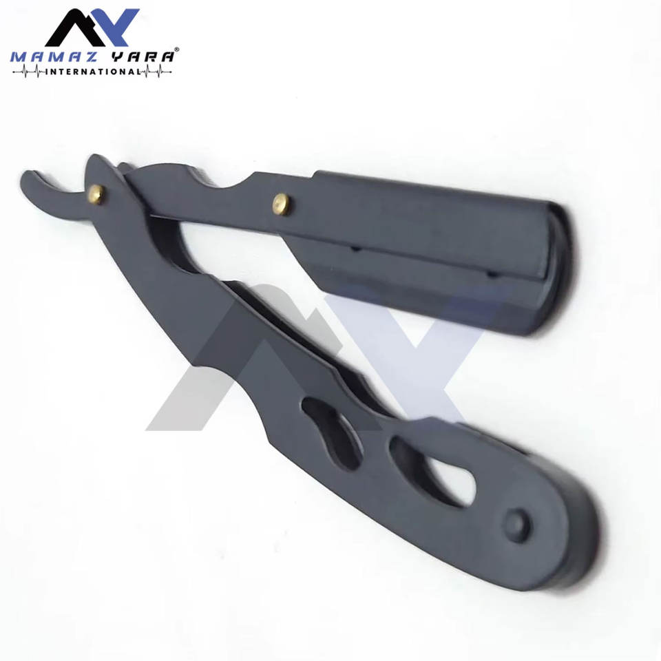 Rasoir de barbier professionnel à lame droite, revêtement noir, manche élégant, rasage confortable, salon à domicile, toilettage