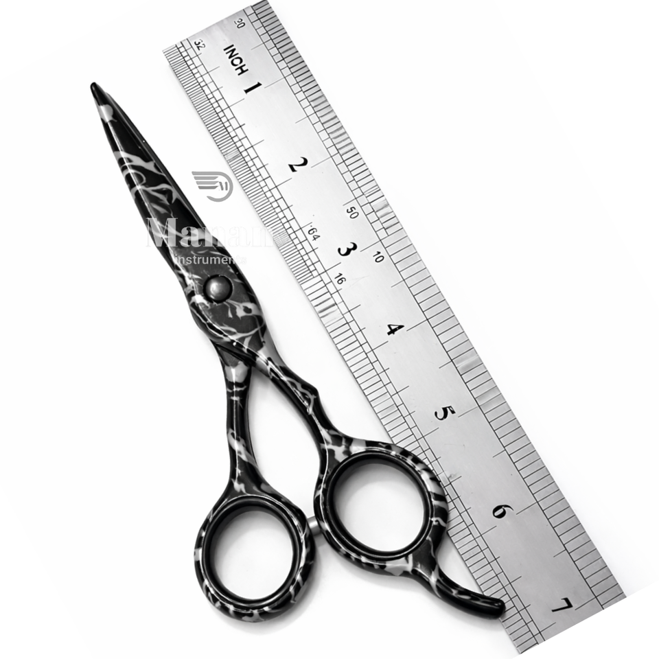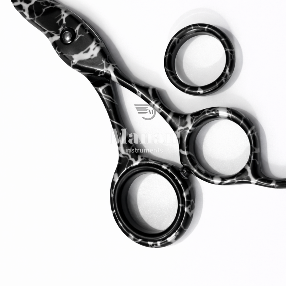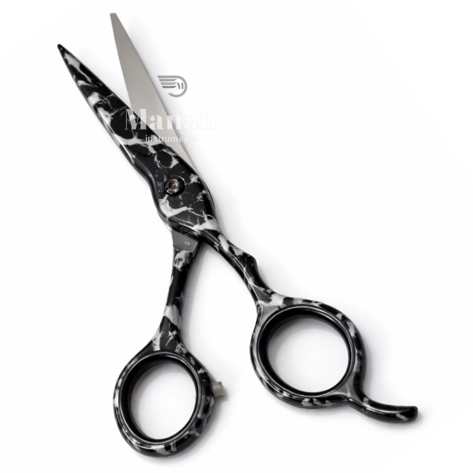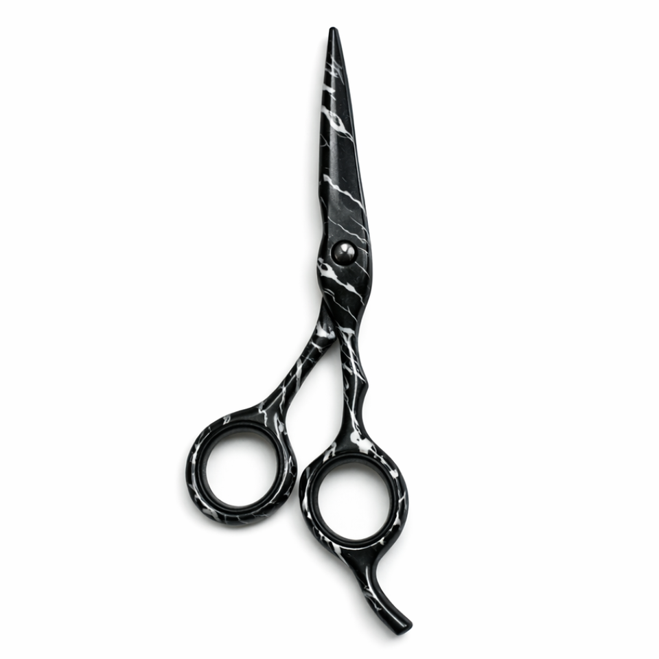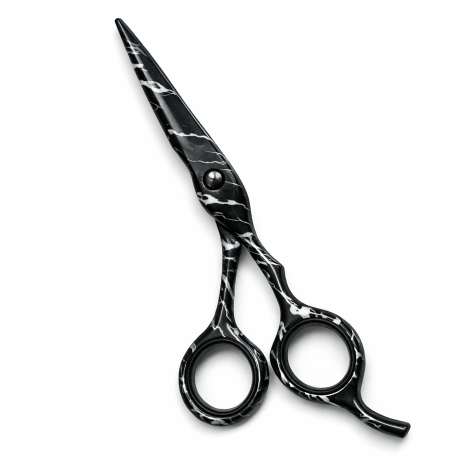 Ciseaux de coiffure professionnels en acier inoxydable à lame affûtée en marbre noir pour salon et barbier