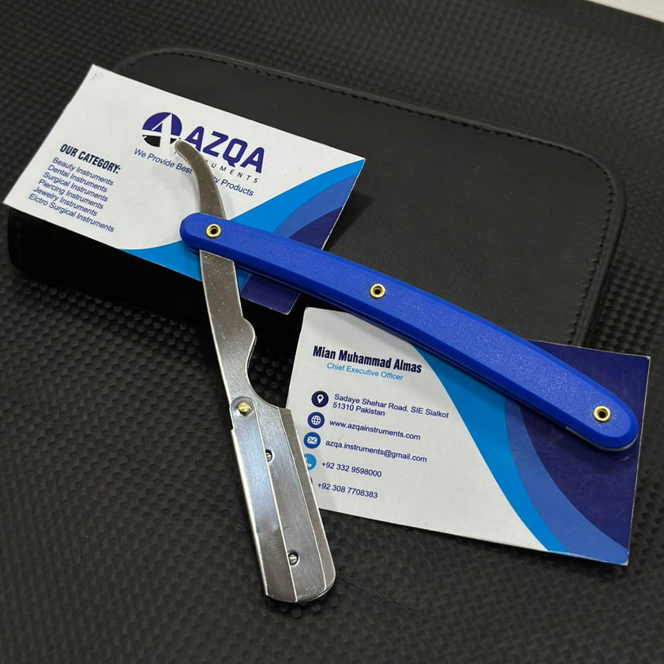 Rasoir droit professionnel à manche bleu en acier inoxydable pour hommes, couteau de barbier pour le soin masculin