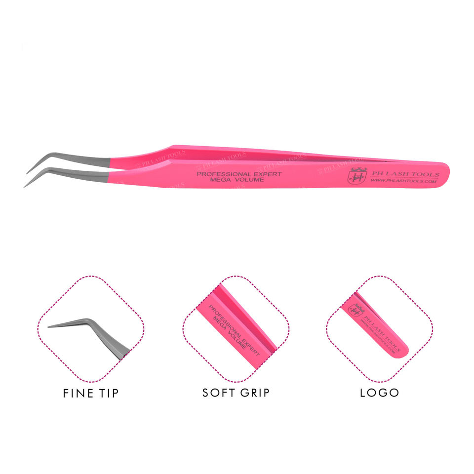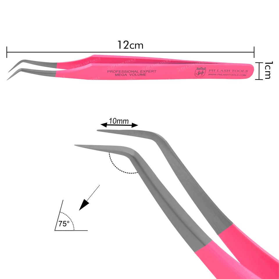 Pincettes professionnelles pour Extension de cils, Type C, 10mm 75 degrés, couleur rose, privée, ustensiles de beauté,