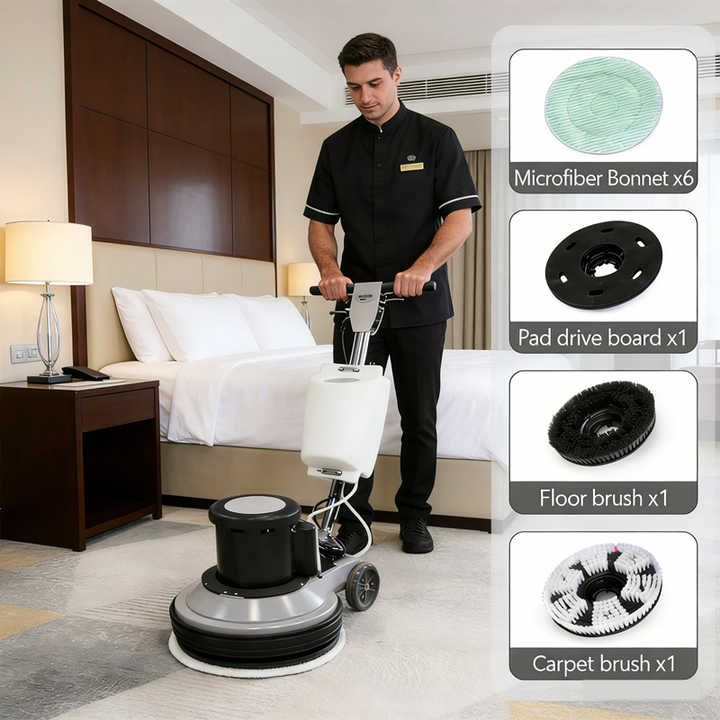 Machine professionnelle de nettoyage et de lustrage de tapis, autolaveuse verticale industrielle pour nettoyage à sec avec bonnet en microfibre