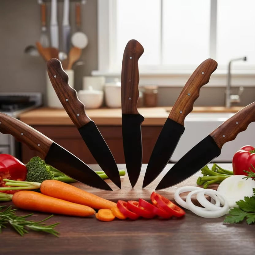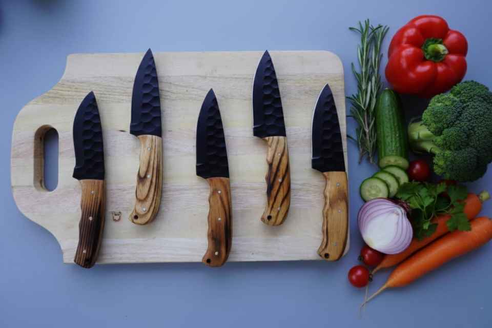 Ensemble de couteaux de chef professionnels, faits à la main, en acier carbone forgé, ensemble de 5 pièces, manche en bois octogonal, ambidextre, durable, léger