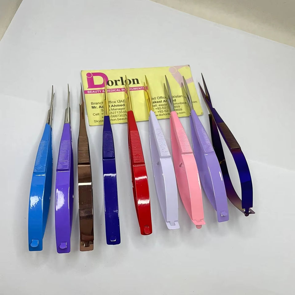 Ciseaux à ressort à sourcils enduits de couleur professionnelle lame droite en acier inoxydable durable meilleurs ciseaux à ressort à cils/sourcils