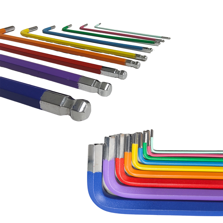 Jeu de clés Allen hexagonales à embout sphérique, codées par couleur, professionnelles, métriques, pour la réparation automobile et l'entretien industriel