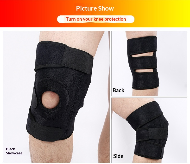 Genouillères de compression professionnelles pour adultes, noires, en élasthanne, soutien sportif, soulagement de la douleur, football, course à pied, toutes saisons, fermeture auto-agrippante
