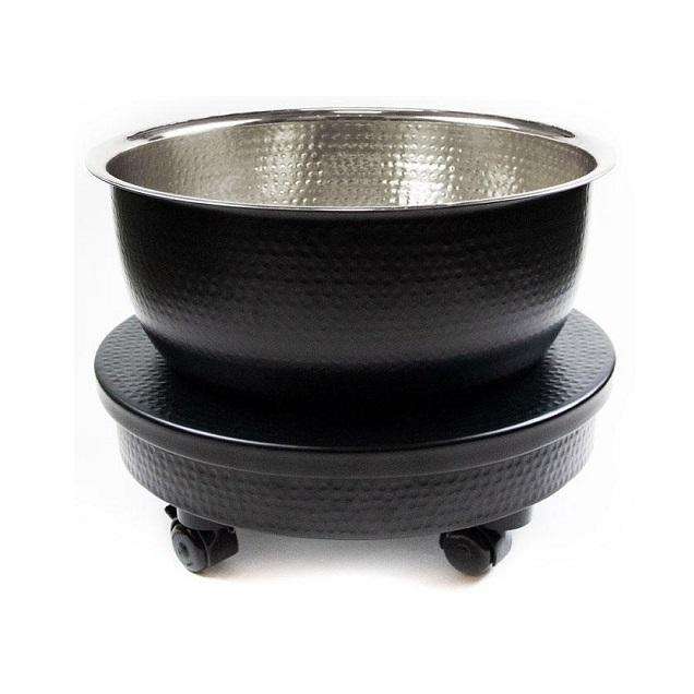 Bol de spa en cuivre professionnel avec repose-pieds et chariot, design martelé artisanal, écologique, pour pédicure