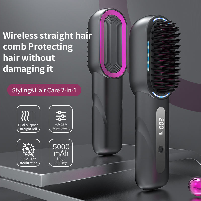 Lisseur de cheveux sans fil professionnel, peigne, écran LCD, portable, sans fil, rechargeable, brosse lissante pour cheveux