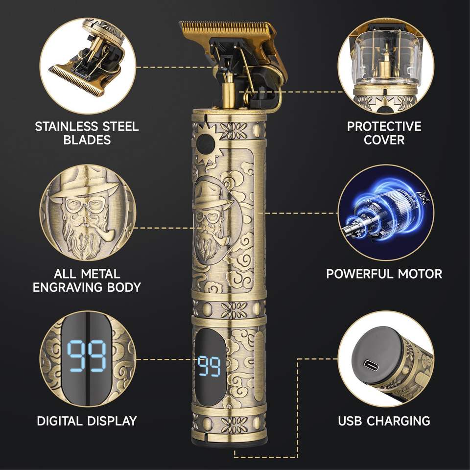 Kit de tondeuse à cheveux professionnelle sans fil rechargeable avec lame en acier inoxydable, tondeuse à barbe et bords ajustables à zéro espacement