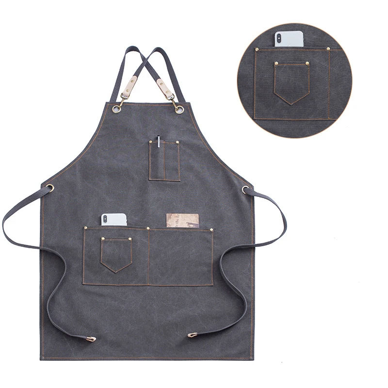 Tablier de cuisine professionnel croisé à manches élégantes avec deux poches pratiques
