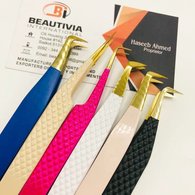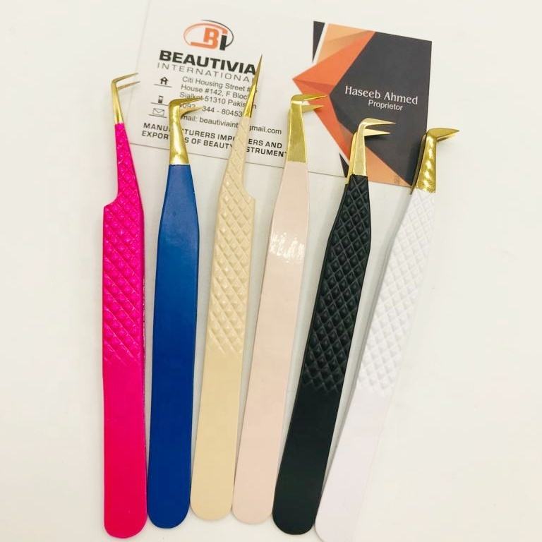 Pince à épiler d'extension de cils en acier inoxydable enduite de couleur personnalisée professionnelle outil d'application de cils à pointe pointue durable