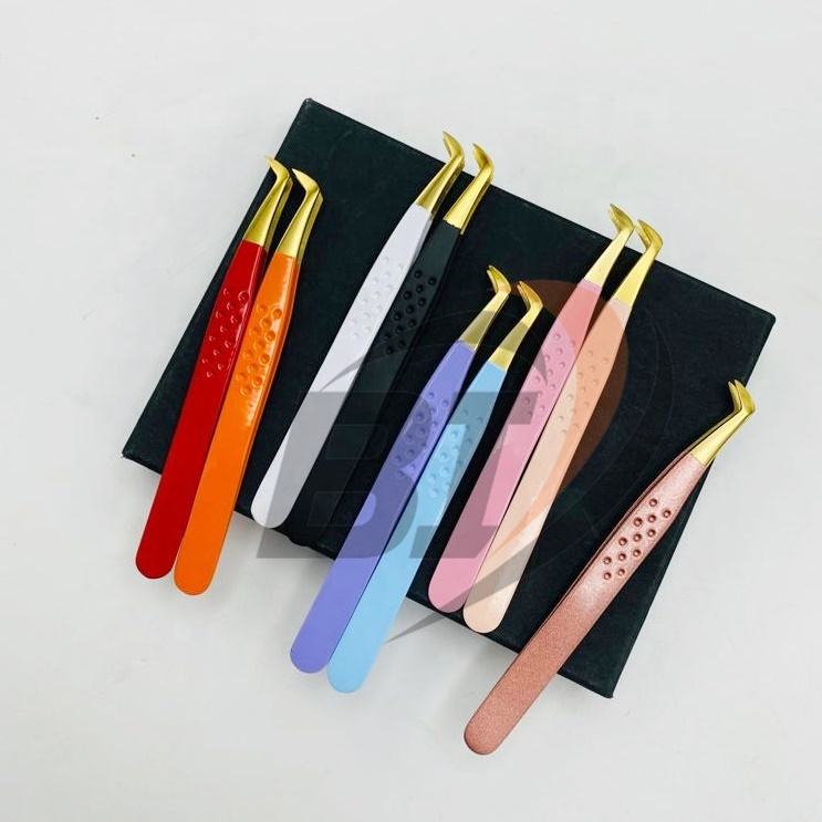 Pince à épiler d'extension de cils de couleur personnalisée professionnelle botte ronde en acier inoxydable durable avec une forte adhérence et une pointe pointue