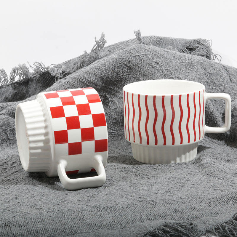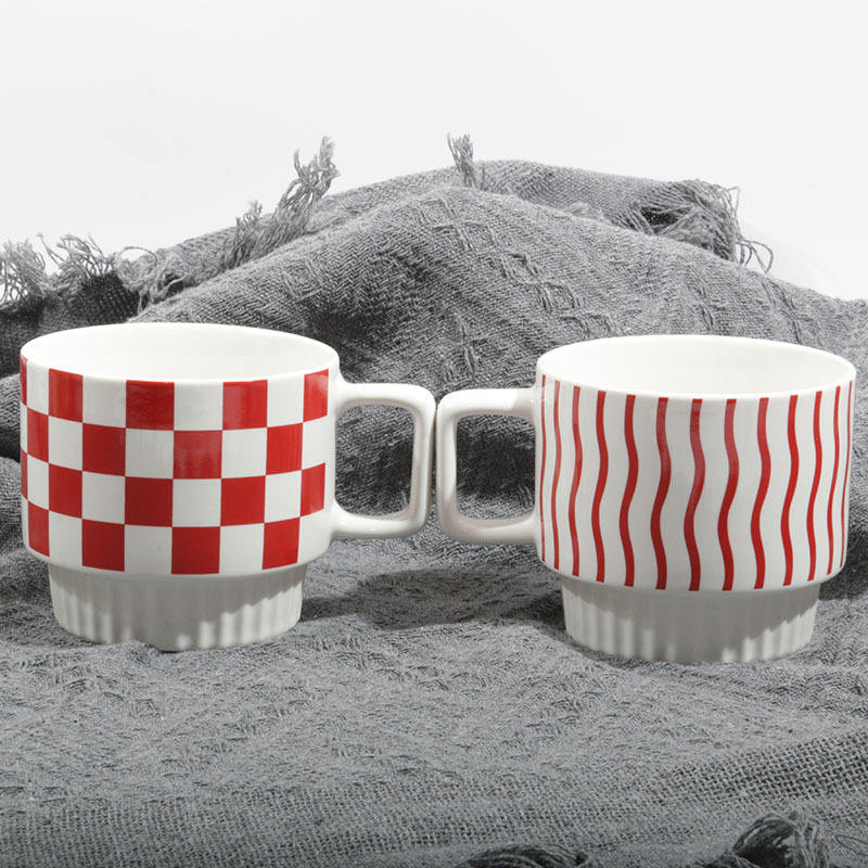 Tasse à café en céramique tendance et créative, personnalisée, motif à carreaux et rayures ondulées - Tasse pour couple, sans BPA, passe au lave-vaisselle