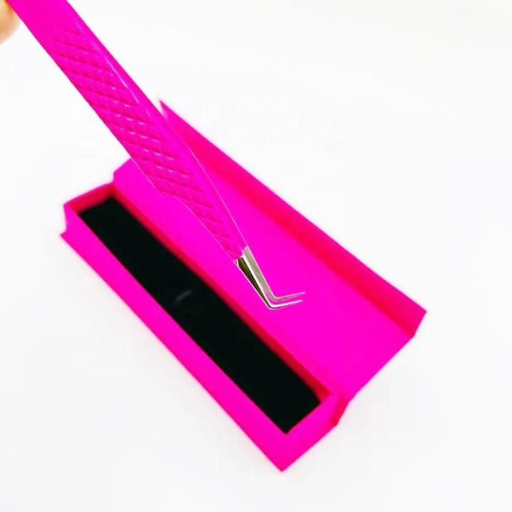Logo personnalisé professionnel rose anti-magnétique 10mm de longueur pointe lisse pince à cils en acier inoxydable applicateur de pointe de fibre emballage
