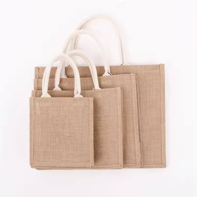 Professionnel personnalisé logo imprimé en gros de haute qualité poignée Portable jute toile de jute sac fourre-tout