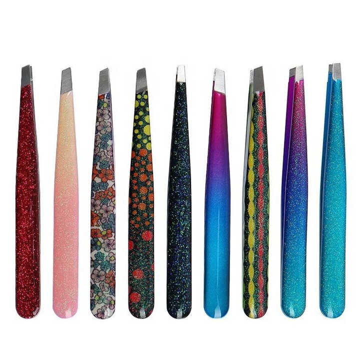 Pince à épiler oblique à pointe de sourcil en acier inoxydable légère et écologique personnalisée professionnelle ensemble de pinces à sourcils colorées