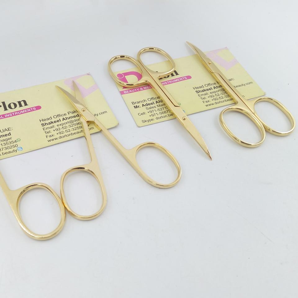 Ciseaux à cuticules professionnels en or, lame incurvée, ciseaux à ongles pour manucure, vente en gros, logo personnalisé, acier inoxydable, ciseaux de beauté