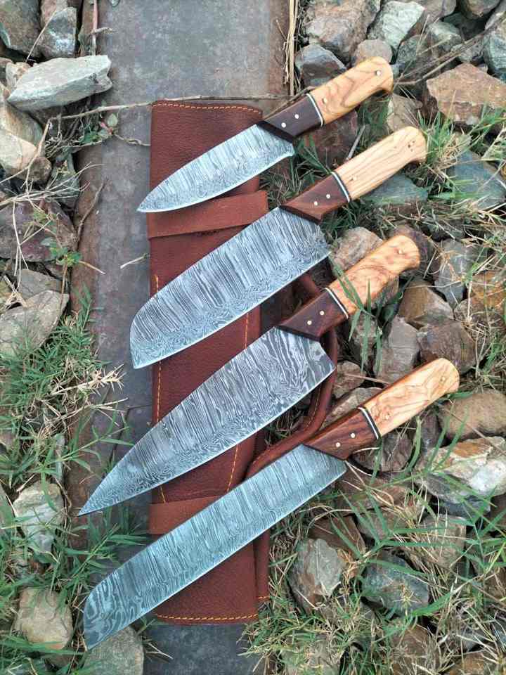 Ensemble de couteaux de cuisine professionnels forgés à Damas, manche personnalisé, design de bloc imprimé OEM, compatible lave-vaisselle, écologique