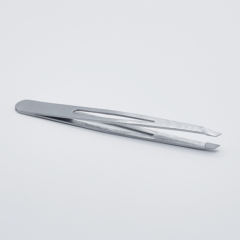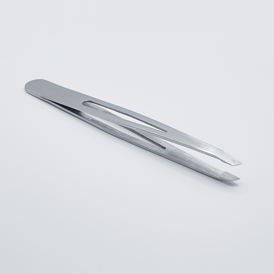Pince à épiler à sourcils de conception professionnelle pointe inclinée finition polie incurvée meilleure qualité