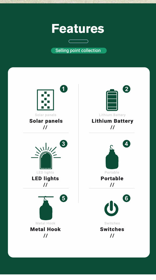 Nom du produit:Ampoule menée rechargeable de lumière solaire portative extérieure de camping