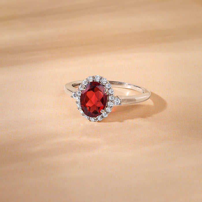 Bague grenat en argent de conception professionnelle sertie de pierre naturelle avec lunette en plaqué rhodium de coupe ovale bijoux en pierres précieuses